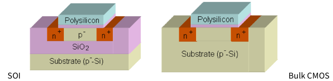 Присуството на изолациониот слој воSOI наполитанкија намалува струјата и капацитетот на истекување, придонесувајќи за помала статичка и динамичка потрошувачка на енергија на уредот.
