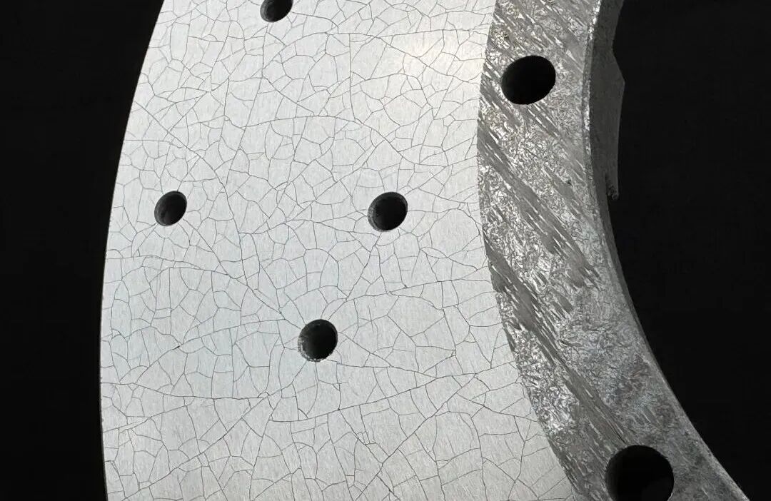 1) CCB карбон-керамички сопирачки дисковисе покриени со SiC облога на нивната површина, при што се појавува сјајна површина и фини пукнатини.
