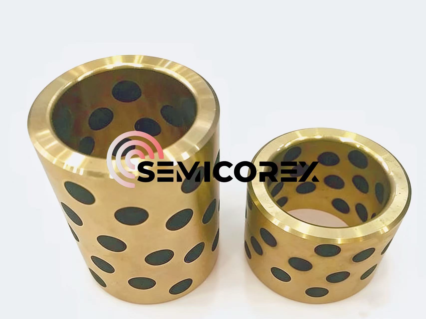 Семикорекс без маслографитни чаурисе произведуваат со вградување на специјално формулирани цврсти приклучоци за подмачкување на графит во материјалот од металната матрица претходно издупчен со бројни уредни наредени и соодветни мали дупки. Овие графитни чаури без масло ја комбинираат високата цврстина и отпорноста на абење на металната матрица со само-подмачкувачките својства на графитните приклучоци. За време на работата, графитните честички автоматски се ослободуваат од малите дупки на черупката под дејство на триење и формираат униформа графитна фолија на контактната површина. Оваа униформа графитна фолија може да постигне одлични самоподмачкувачки перформанси без да се потпира на надворешни лубриканти.
