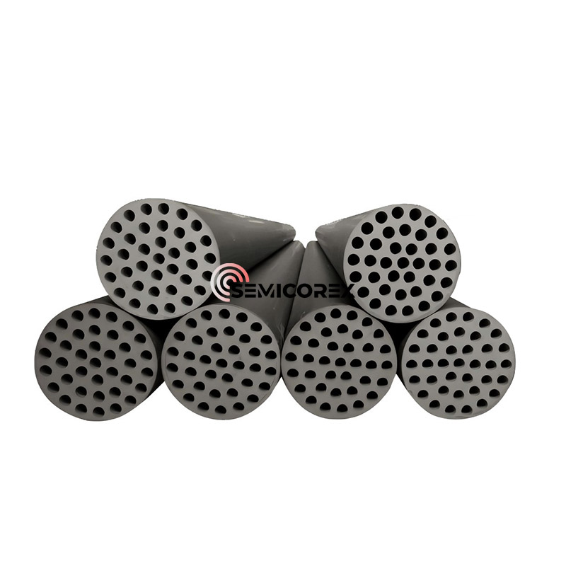 Композитната мембрана на Semicorex Silicon Carbide е материјал од следната генерација со извонредни перформанси во поголемите индустрии, како што се третман на вода, фармацевтски производи и хемикалии. Новата технологија на мембрана е развиена од силикон карбид, алумина, калциум оксид и неколку други суровини; Овие се доведуваат до високи температури и притисоци за да бидат синтерувани во многу издржлив и ефикасен медиум за филтрација.