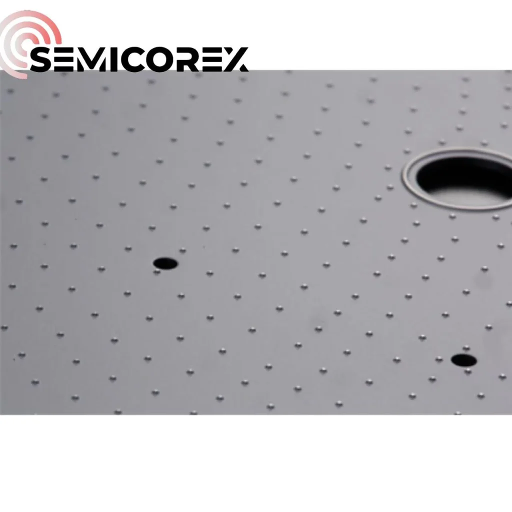 Семикорекс силициум карбид иглички се подложени на прецизна обработка и мелење. Висината, дијаметарот и растојанието на игличките на површината се строго контролирани. Тие можат да постигнат плошност на чашката од 0,3–0,5 μm, што обезбедува оптимална рамнина на обландата и значително го елиминира изобличувањето или фрактурата на обландата како резултат на нерамномерно оптоварување.